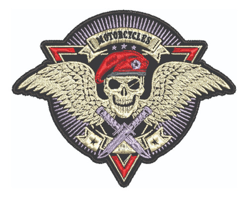 Patch Bordado Caveiras Caveira Boina Vermelha 10x7,8cm